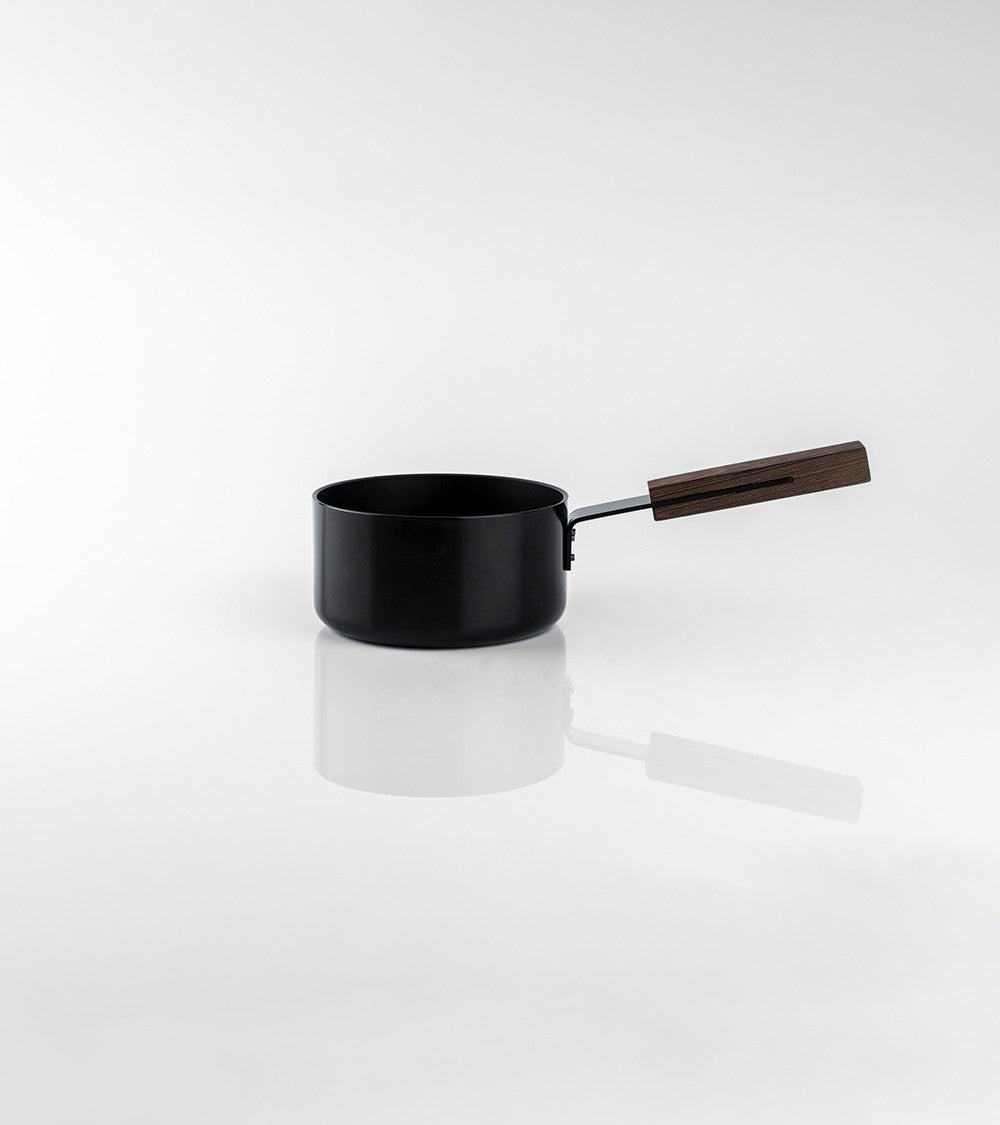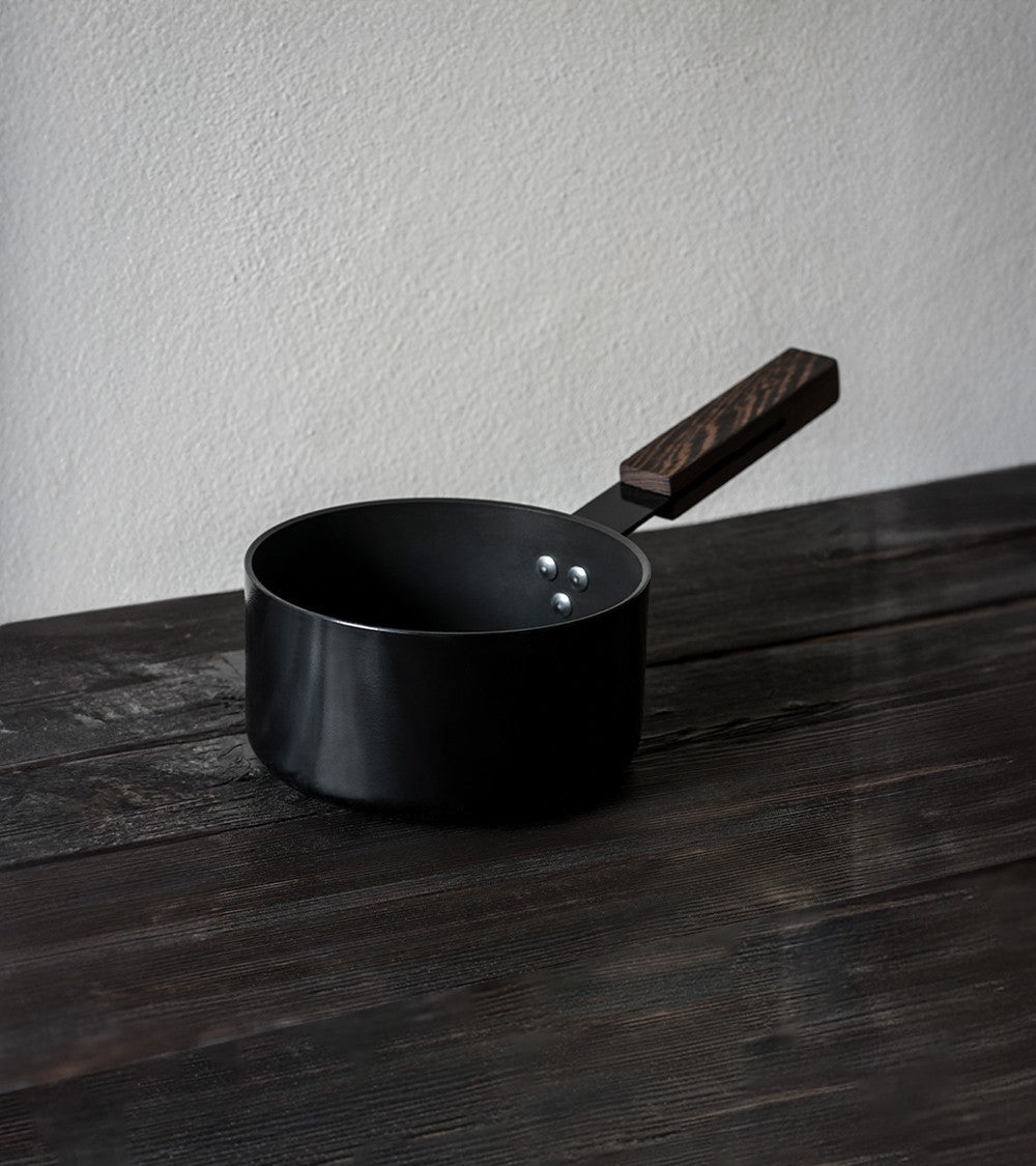 La ricerca estetica punta a un contrasto cromatico e materico: la linea Black è pensata nella nuance del nero sia per l’esterno, sia per l’interno, mentre i manici in legno wengé si abbinano con eleganza al corpo degli utensili. Il manico in wengé assume anche la funzione di perfetto isolante dal calore durante la cottura.