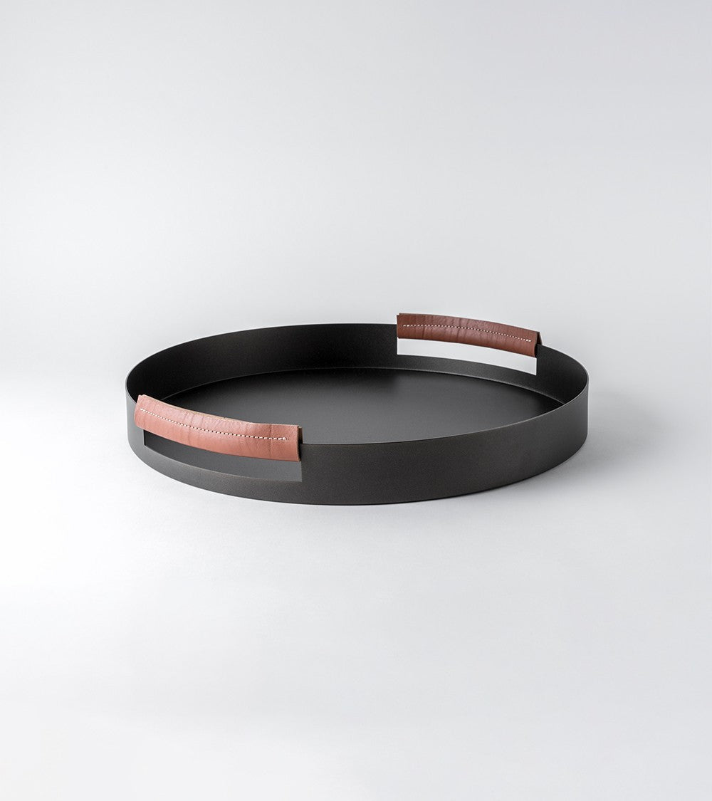 Incredibilmente leggeri e funzionali, la collezione prende ispirazione dal look dei vassoi da bistrot innovandoli con nuovi materiali – alluminio con finitura stone-washed e ferro brunito – inserendo elementi contemporanei in cuoio quali manici e ganci di appensione.