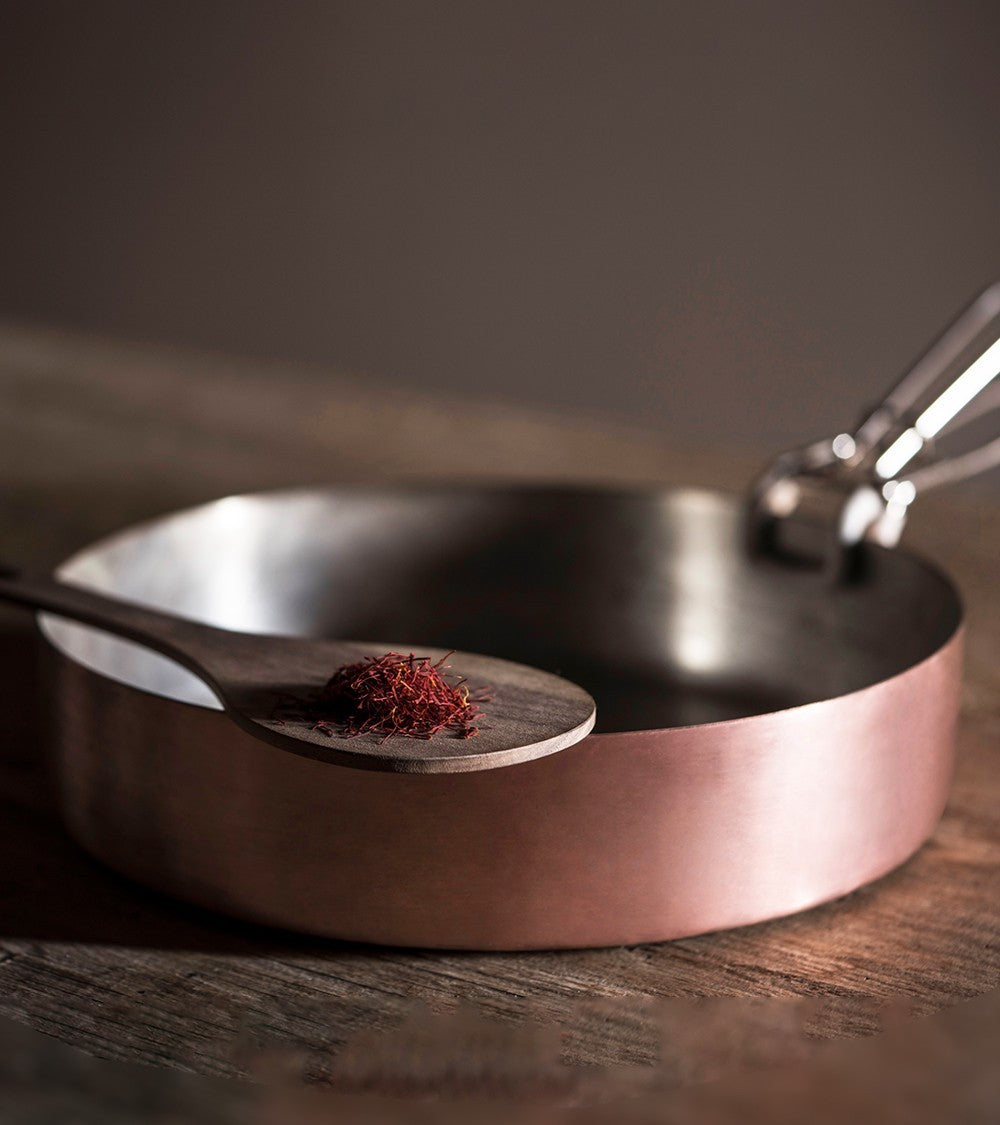 The Rice è la casseruola in rame, eccellente conduttore del calore in modo omogeneo, ideale per tostare, cuocere e mantecare per ottenere un risotto perfetto.
