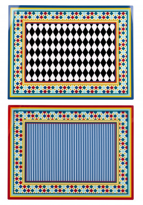 Set di 2 tovagliette della linea Decor, in cristallo acrilico con grafiche vivaci e colorate.