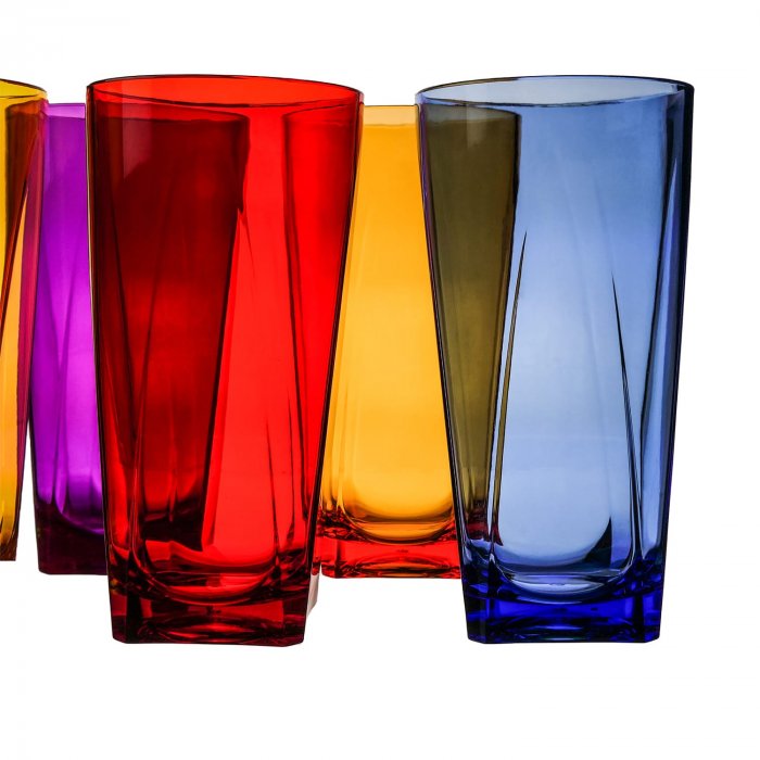 Set di 6 bicchieri tumbler alti in SAN della collezione Party, dal taglio semplice ed elegante. Disponibili in versione trasparente e colorata.