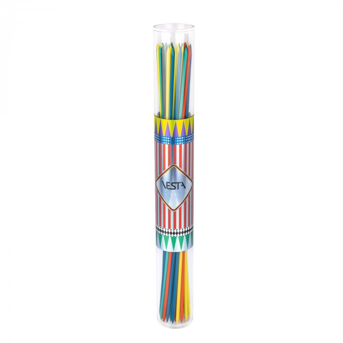 Questo set composto da scatola e bastoncini per giocare è realizzato interamente in cristallo acrilico di alta qualità. I bastoncini presentano le estremità colorate come nel gioco classico, dove ogni colore indica il relativo punteggio.