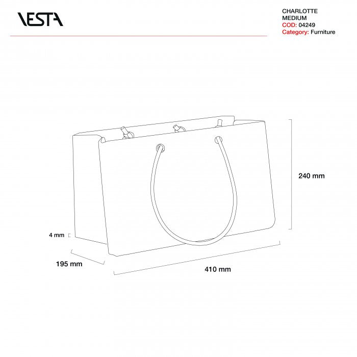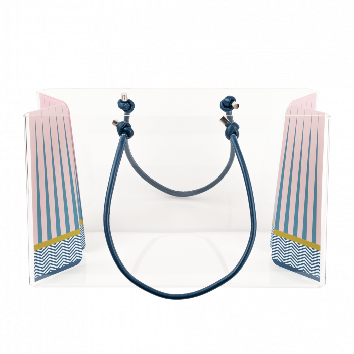 La shopper porta oggetti Charlotte è un elegante e pratico contenitore multiuso dal design originale, ispirato alla forma di una borsa. Realizzata in resistente cristallo acrilico, Charlotte si distingue per la sua estetica raffinata e per le grafiche stampate ai lati, disponibili in diverse varianti per adattarsi a ogni stile di arredamento.