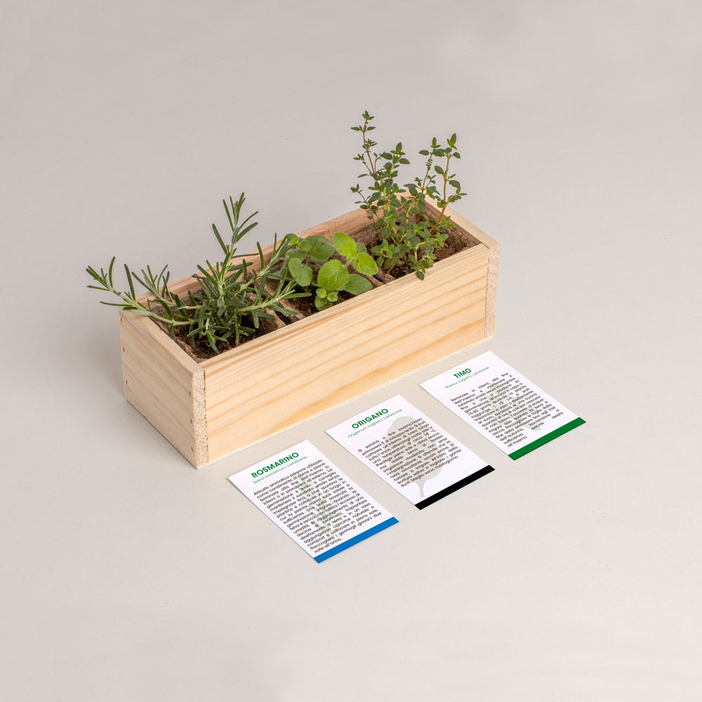Contenuto: 3 bombe di semi di rosmarino, origano e timo, 3 vasetti di germinazione 100% biodegradabili, 3 pastiglie di substrato e 3 schede di coltivazione.