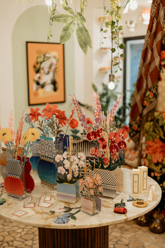 Le candele in ceramica, decorate a mano, racchiudono fragranze audaci che rispecchiano il design creativo e risvegliano i sensi.