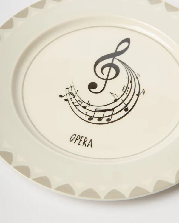 Un piatto in bianco e nero dal mood artistico: la chiave di violino e lo spartito creano un’atmosfera musicale elegante, ideale per chi ama la cultura e la musica classica.