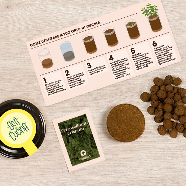 Con questo kit potrai goderti un orto di prezzemolo nella tua stessa cucina.
