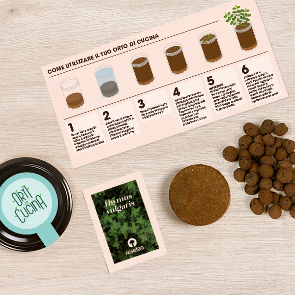 Con questo kit potrai goderti un orto di Timo nella tua cucina.