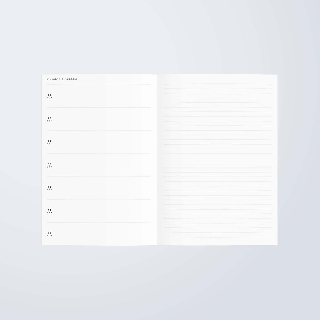L’agenda settimanale Botanical ha internamente layout chiaro e semplice dove, da una parte potrai annotare gli impegni, dall’altra una pagina a righe, su cui potrai scrivere i tuoi appunti! Le pagine introduttive contengono un planner mensile per avere una visione generale dell’anno, con al fondo obiettivi da raggiungere. A seguire troverai tante pagine libere per poter scrivere i tuoi memo più importanti (password, promemoria, obiettivi…)